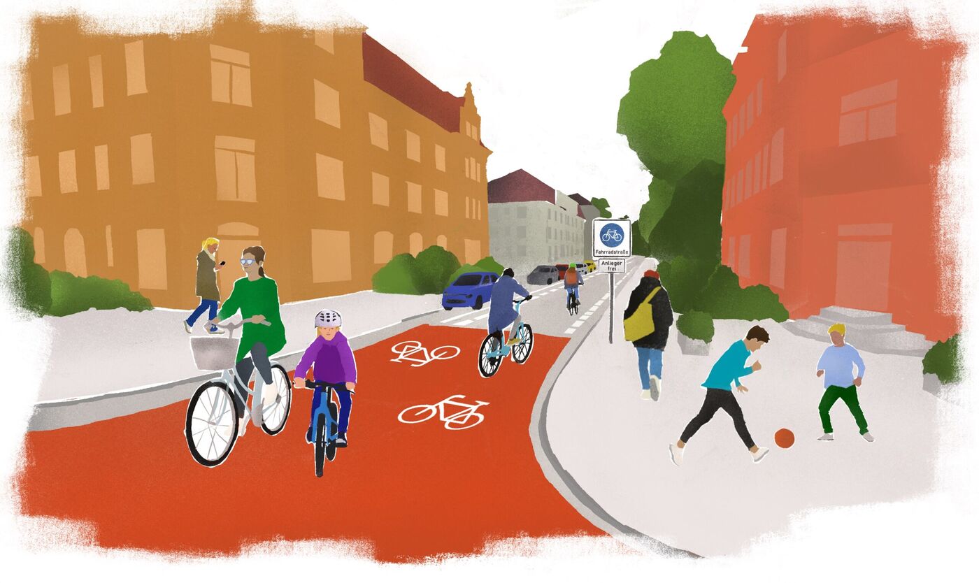 - Eine Visualisierung der Radroute West an der Hermsdorfer Straße. OB Hilbert zeigte sich davon überzeugt.