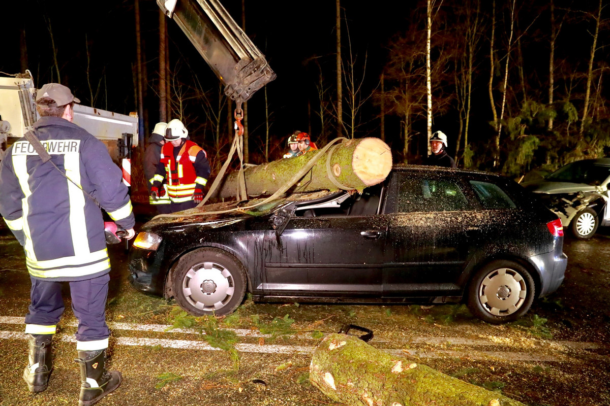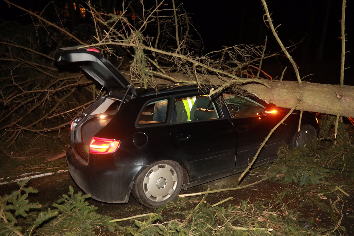 - Auf der B172 ist ein Auto in einen umgestürzten Baum gefahren. Foto: Marko Förster