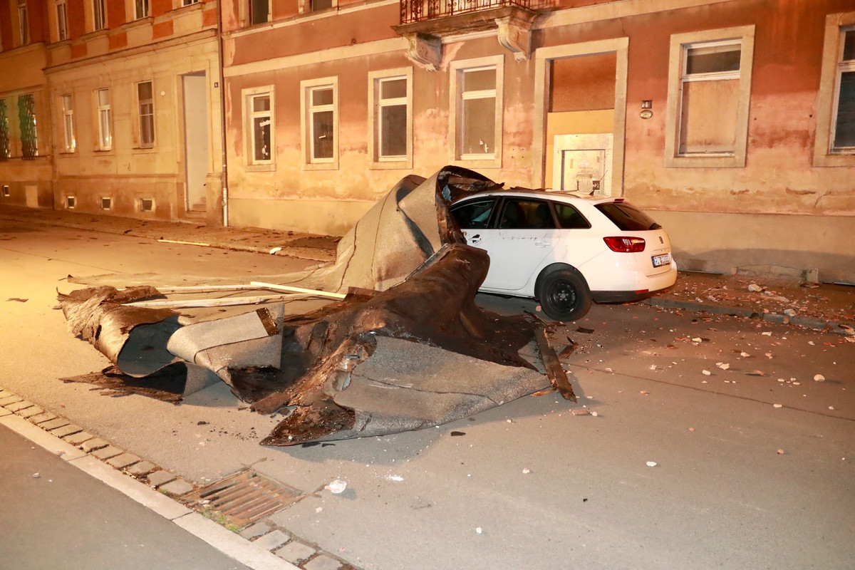 - Sturm deckt in Pirna Dach ab und beschädigt Auto. Foto: Marko Förster