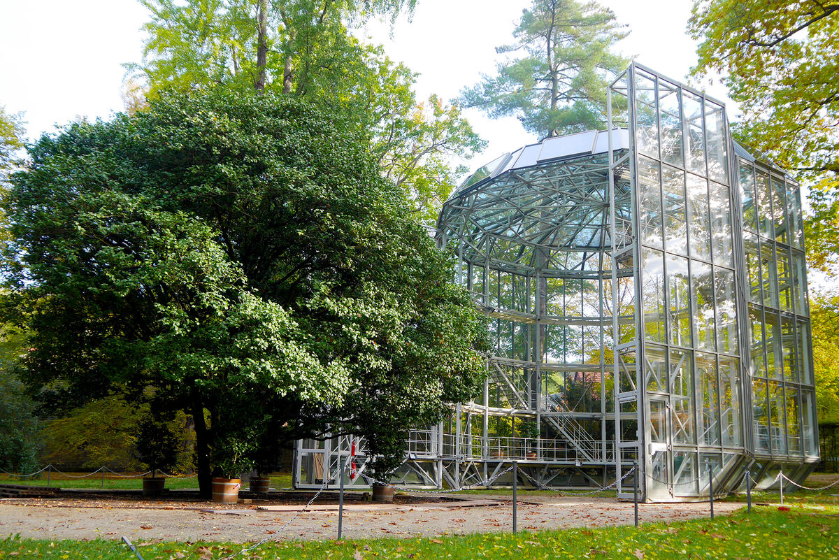 Das fahrbare und 54 Tonnen schwere Glashaus dürfte in dieser Größe einzigartig auf der Welt sein, heißt es vom zuständigen Schlösserland Sachsen. Das Gewächshaus übernimmt automatisch die Steuerung von Temperatur, Belüftung, Luftfeuchte und Beschattung.