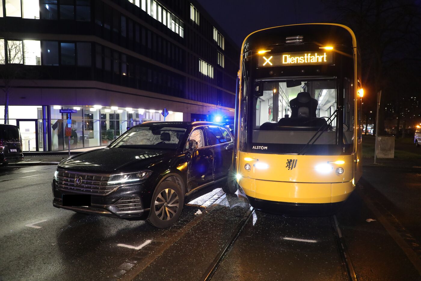 Auf der Münchner Straße an der Kreuzung Bayreuther Straße in Dresden ist am Donnerstag Nachmittag ein PKW mit einer Straßenbahn der Linie 3 kollidiert.