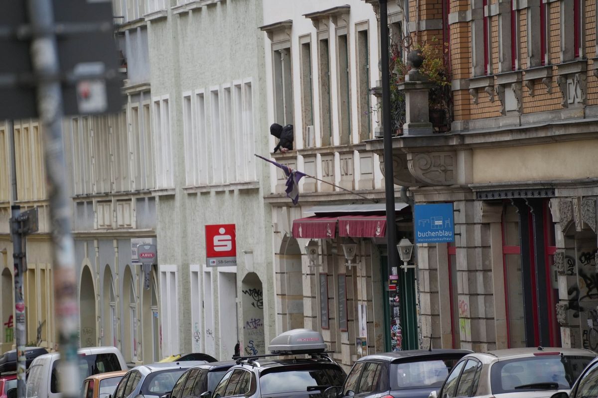 Passanten hatten am Mittwochnachmittag gegen 14:20 Uhr einen jungen Mann mit einer Pistole am Fenster eines Wohnhauses gesehen. Die Polizei sperrte den Bereich zwischen Bischofsplatz und Königsbrücker Platz weiträumig ab.