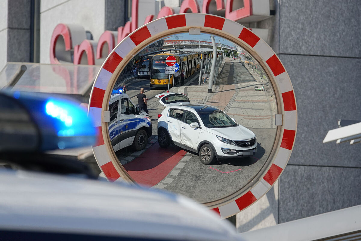Polizeiwagen mit Kia zusammengestoßen