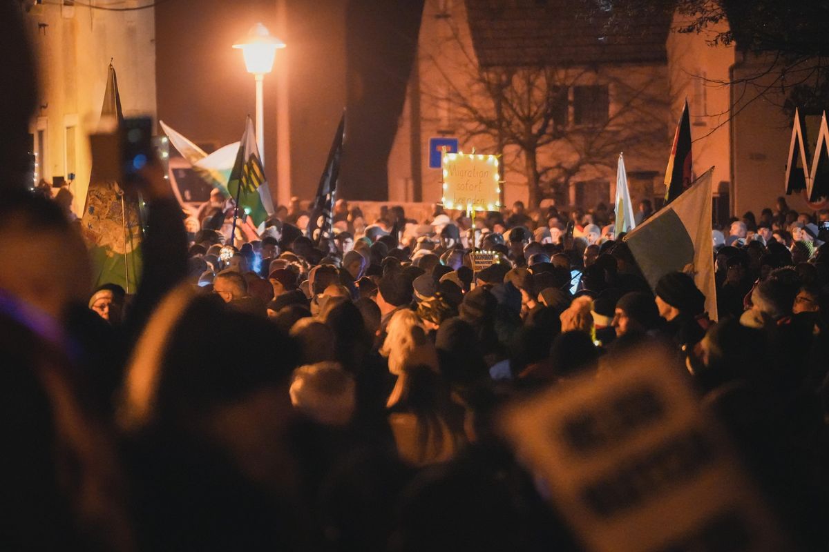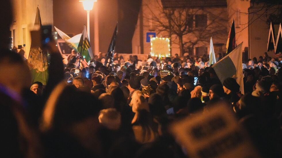 Rund 1.000 Menschen waren am Montagabend auf der Straße. Zu der Demo hatten neben einer Bürgerinitiative auch Pegida und die Freien Sachsen aufgerufen.