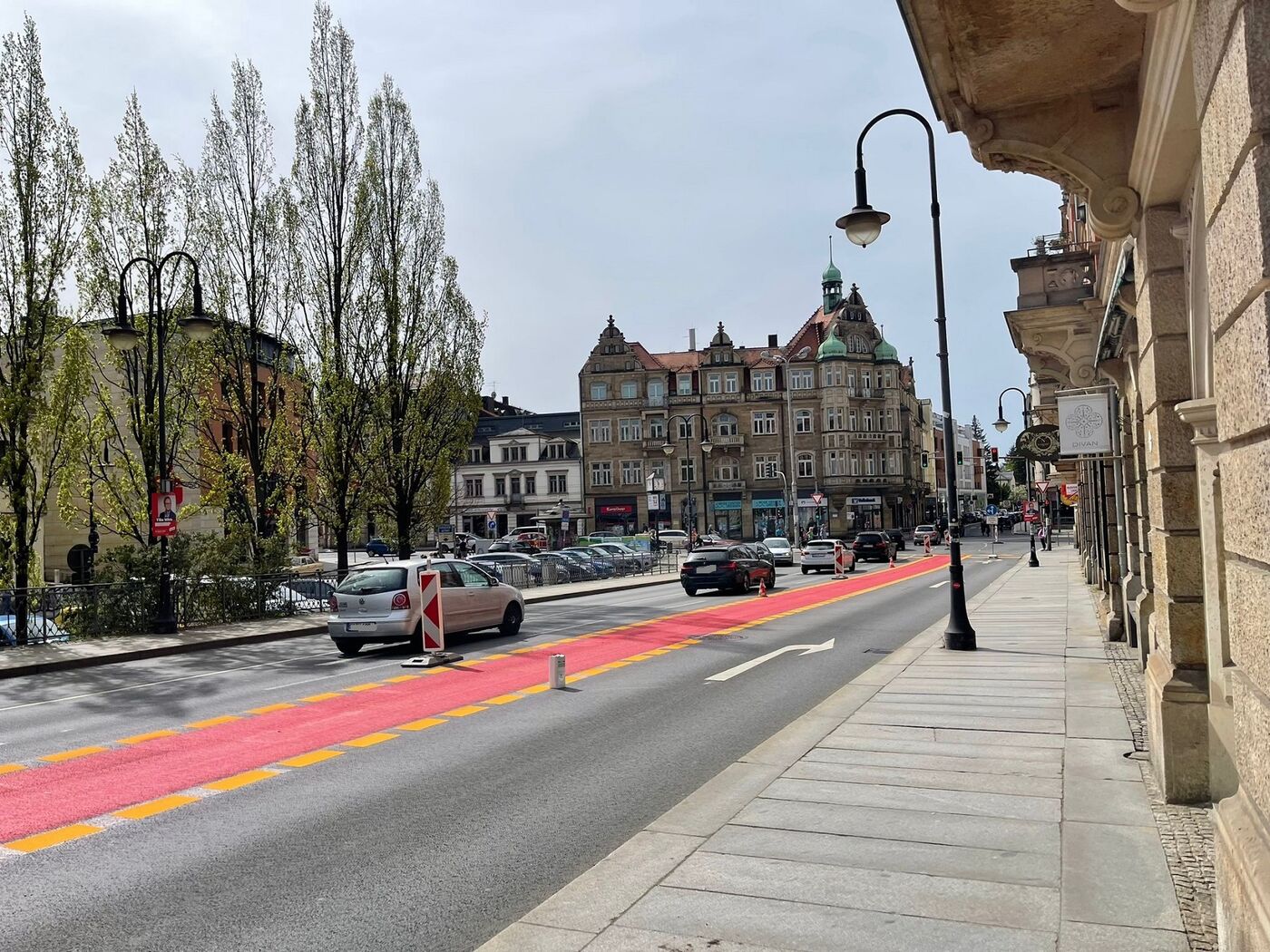 Die Markierungen für den vorübergehenden Radweg waren am Sonntag aufgebracht worden. Der Test zwischen Schillerplatz und Körnerplatz läuft im Rahmen eines sogenannten Verkehrsversuchs.