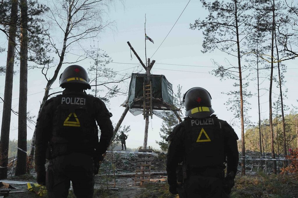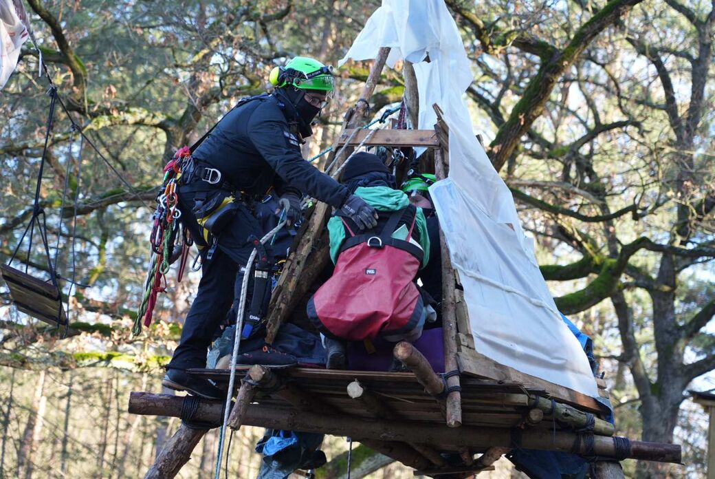 Die Polizei versuchte die Fläche den Angaben nach am Mittwoch zunächst abzusperren, damit keine weiteren Menschen das Waldstück betreten könnten. Nach deren Angaben seien mehrere Dutzend Aktivistinnen und Aktivisten vor Ort - etwa 25 davon hätten sich in Baumhäusern verschanzt. Zudem sind auch Grünen-Abgeordnete aus dem Bundestag sowie parlamentarische Vertreter vor Ort. Sie wollen beobachten, ob alles verhältnismäßig vonstatten geht.