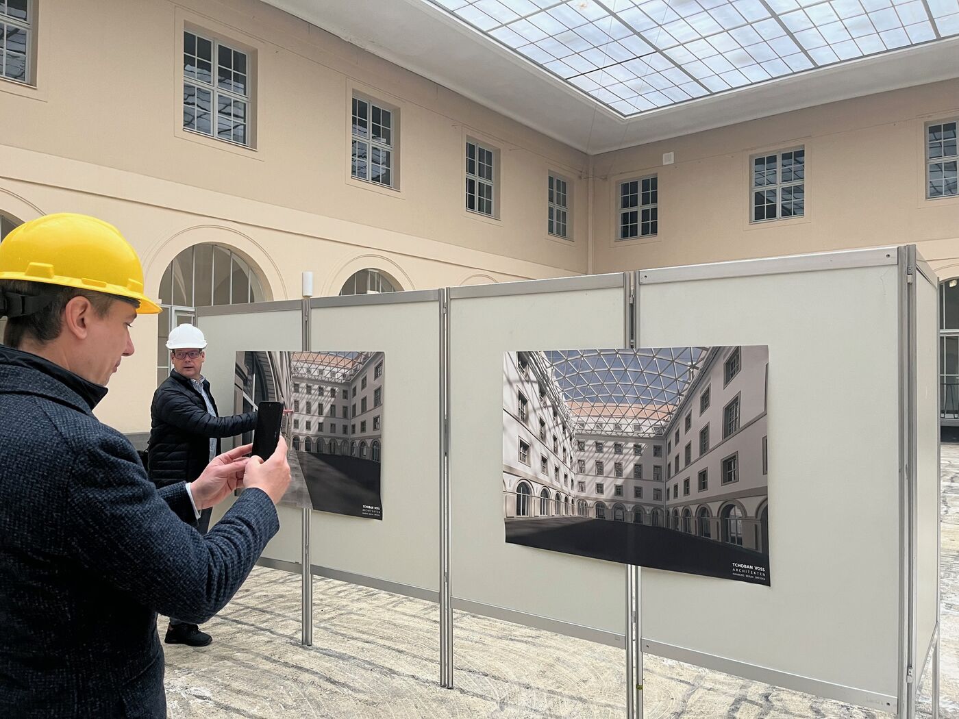 Nun bekommt auch das historische Dresdner Rathaus so einen schicken LIchthof, in dem zukünftig Feste und Veranstaltungen für bis zu 256 Personen stattfinden können. Im Schlosshof war der Architekt der durchsichtigen Membran der Dresdner Peter Kulka (1937 - 2024).
