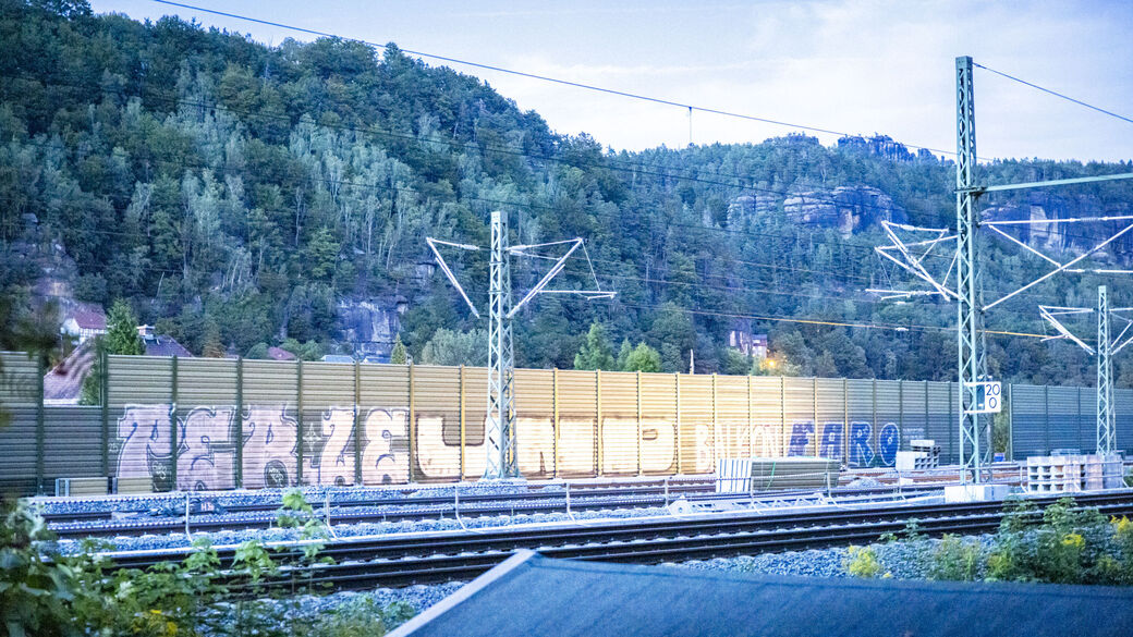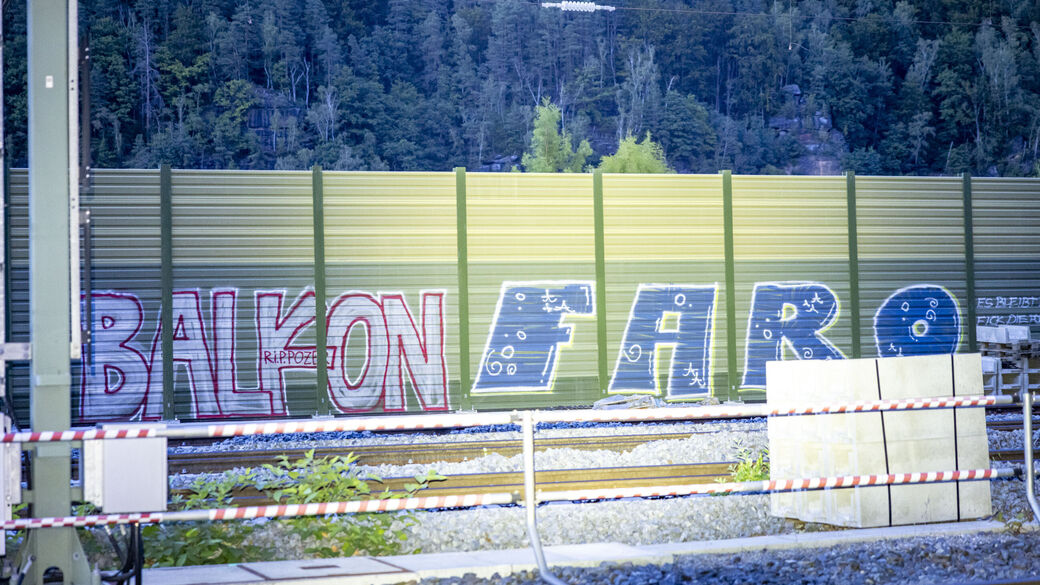 Medienberichten zufolge sollen die vier Personen in Bad Schandau ein riesiges Graffiti an neu angebrachten Schallschutzwänden hinterlassen haben.