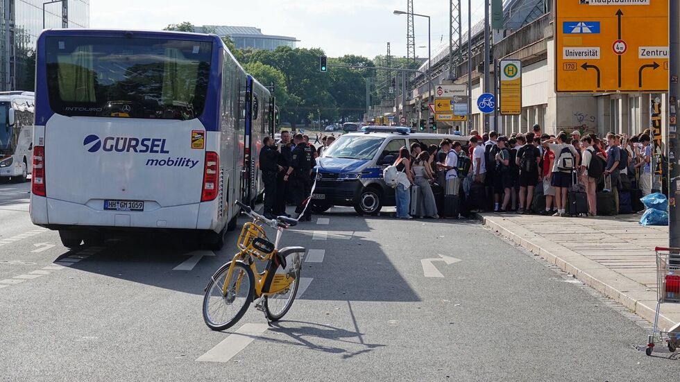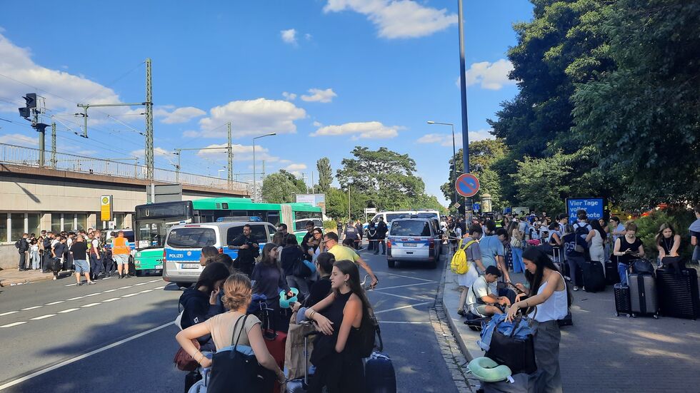 Ersatzbusse bringen die Leute weiter ins Nachbarland. Polizei und Rettungsdienst koordinieren den Ablauf, es wird viel Wasser verteilt bei der Hitze. Die Strehlener Straße am Hauptbahnhof wurde wegen der Menschenmassen gesperrt, die Polizei richtete spontan einen Bushalteplatz für die gestrandeten Reisenden ein.