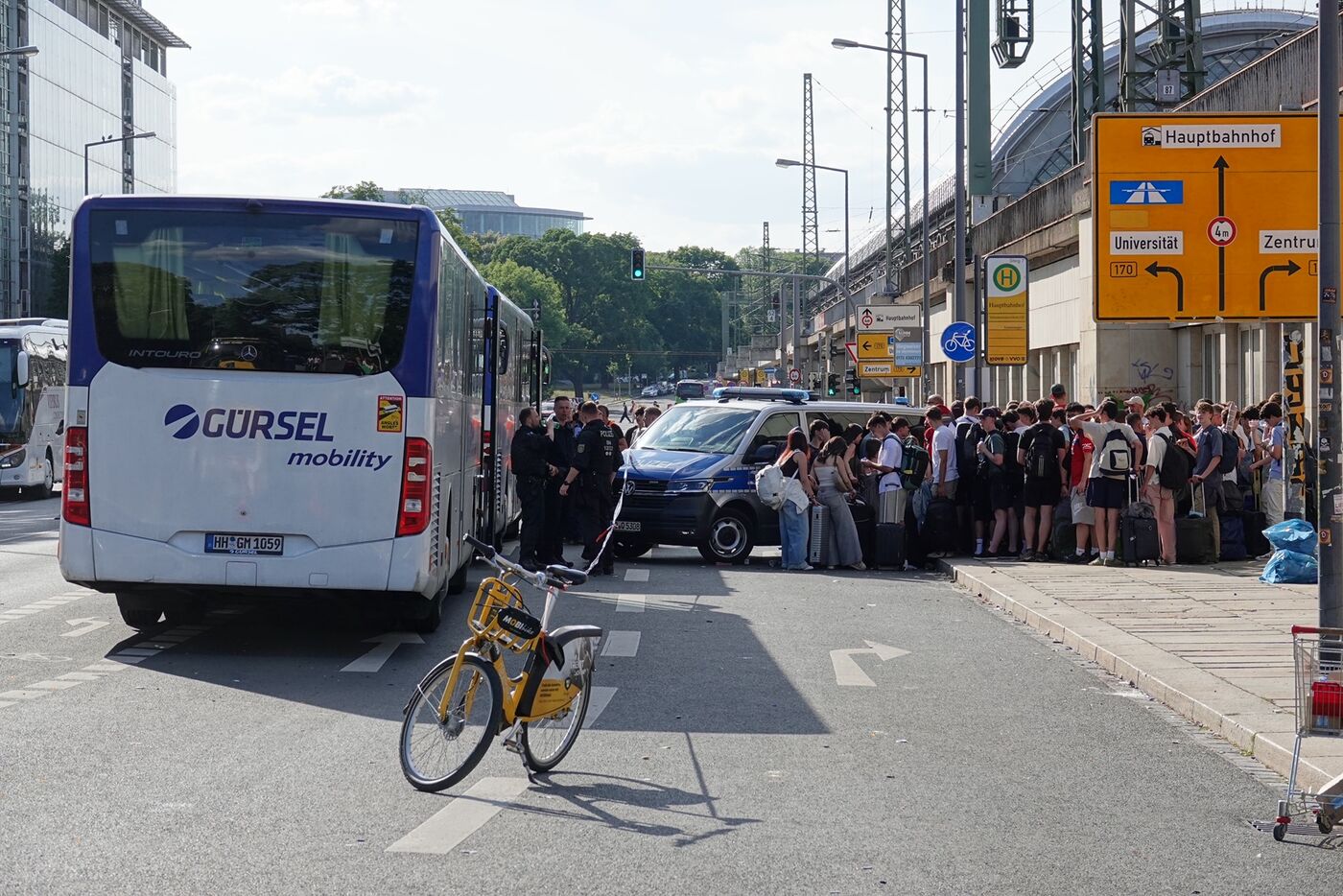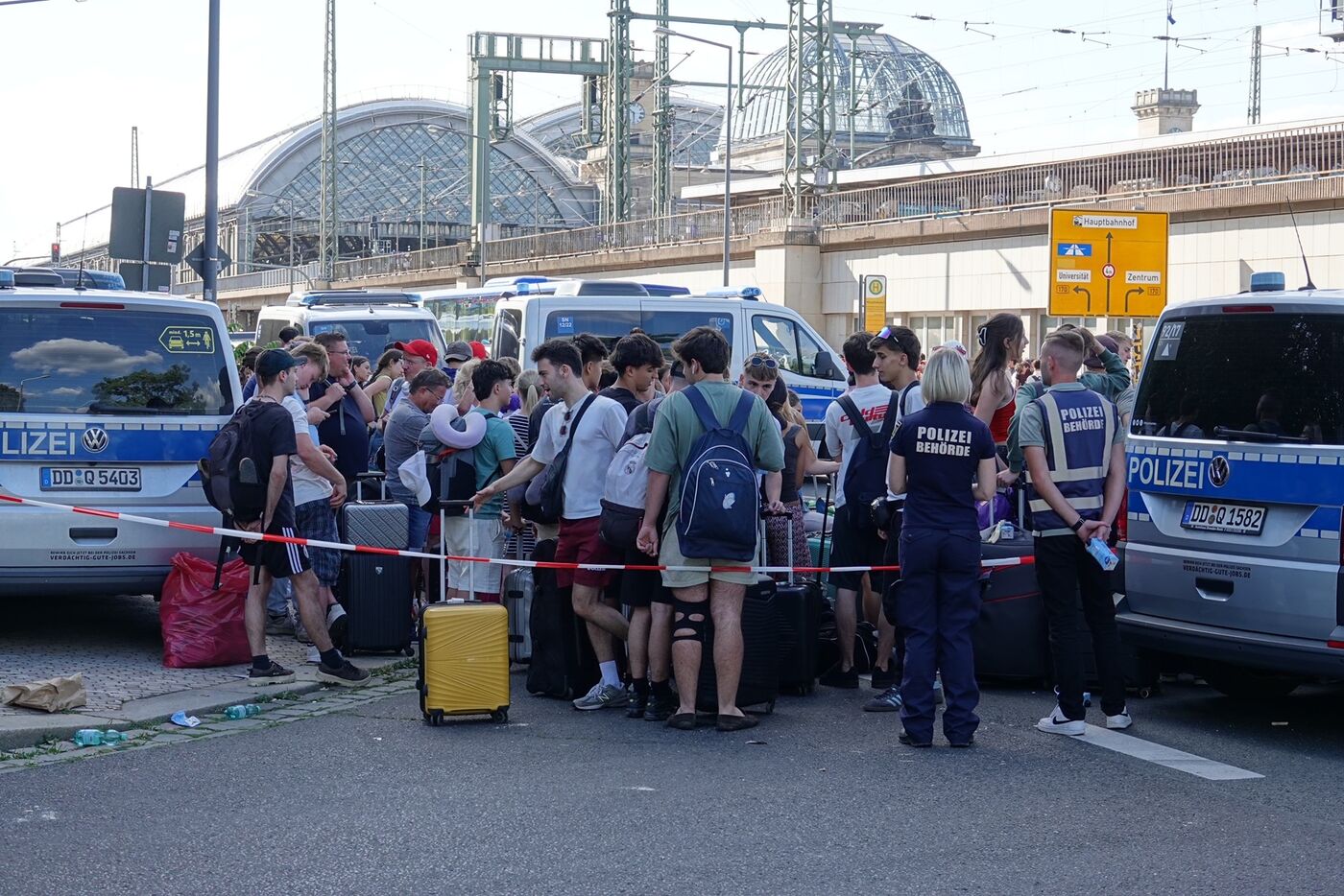 Ersatzbusse bringen die Leute weiter ins Nachbarland. Polizei und Rettungsdienst koordinieren den Ablauf, es wird viel Wasser verteilt bei der Hitze. Die Strehlener Straße am Hauptbahnhof wurde wegen der Menschenmassen gesperrt, die Polizei richtete spontan einen Bushalteplatz für die gestrandeten Reisenden ein.