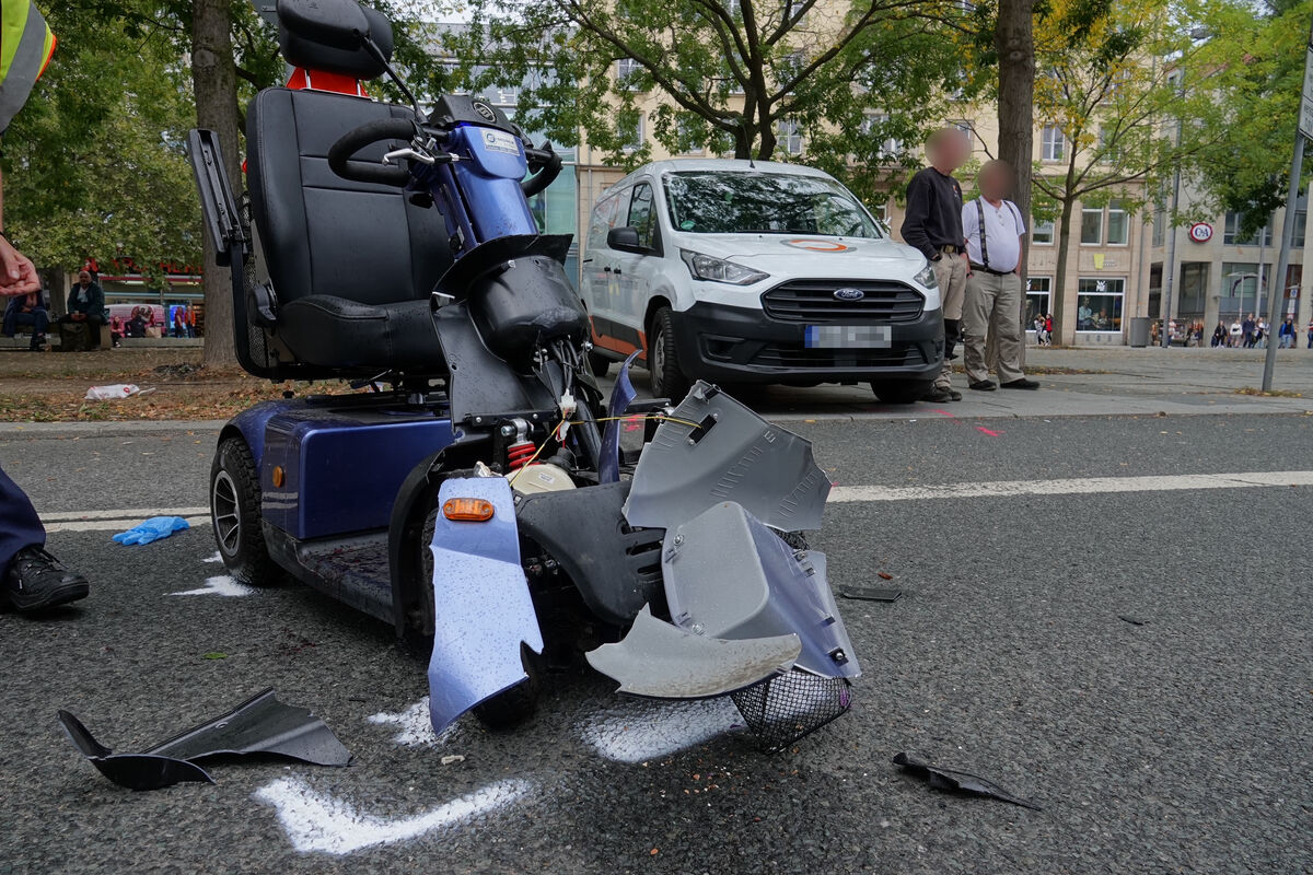 Beim Zusammenstoß eines Transporters mit einem Elektrorollstuhl in Dresden ist am Dienstagnachmittag ein 89-Jähriger schwer verletzt worden. Der Rollstuhlfahrer sei auf dem Fahrradstreifen auf dem Dr.-Külz-Ring in die falsche Richtung gefahren, teilte die Polizei am Dienstag mit.