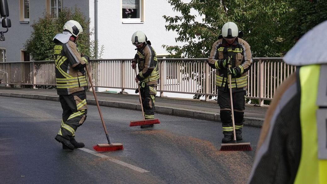 Rutschgefahr nach Unfall: Braumalz-Rückstände auf der B173