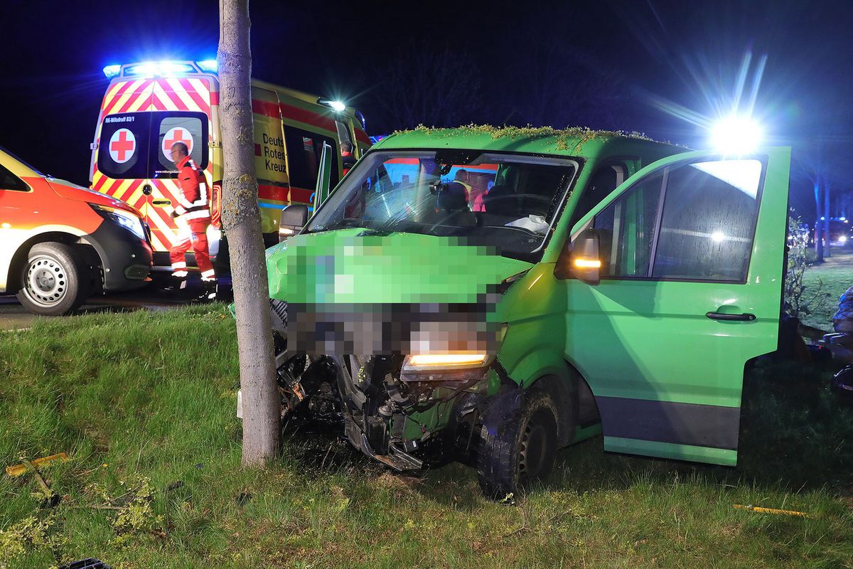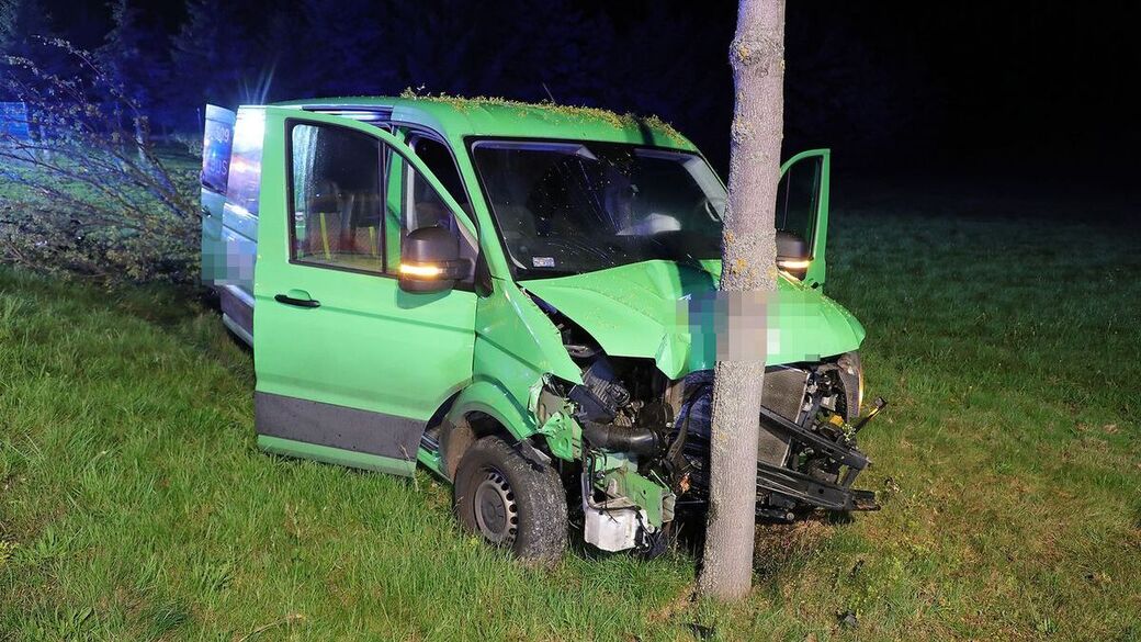 - Der Transporter kam erst an einem Baum zum Stehen.
