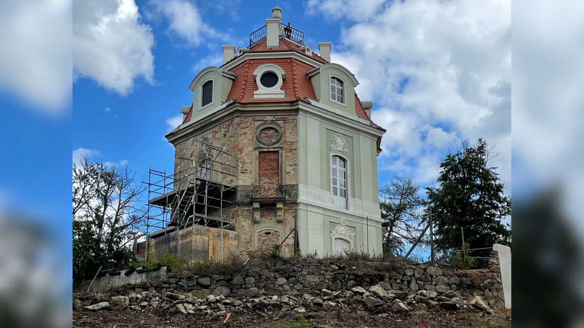 Das Hellhaus im Friedewald Moritzburg soll schon bald wieder in voller Pracht erstrahlen. Ein erster wichtiger Bauabschnitt bei der Rekonstruktion ist nun fertig, teilten die Eigentümer, der Staatsbetrieb Sachsenforst, mit. Der Dachstuhl und eine Probeachse der historischen Außenfassade sind wiederhergestellt.