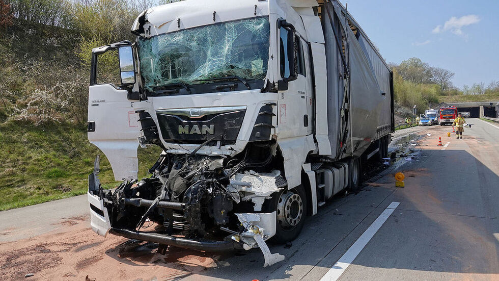 Der Unfallverursacher wurde schwer verletzt und ins Krankenhaus eingeliefert. An seinem LKW entstand Totalschaden. Das Fahrerhaus wurde nach hinten geschoben, das Getriebe herausgerissen.