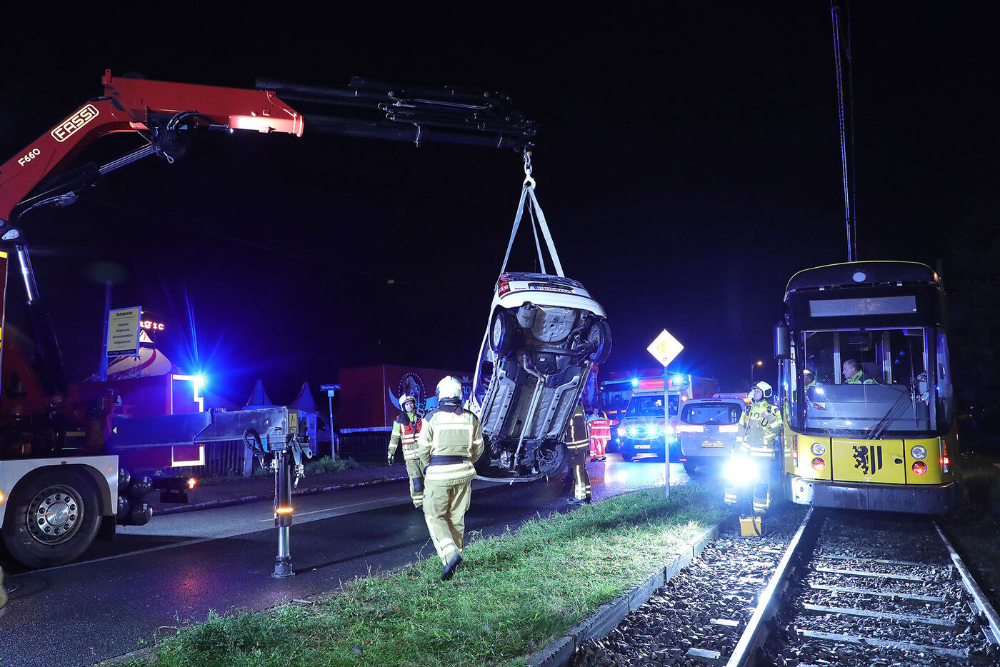 Der Straßenbahnführer konnte nach ambulanter Untersuchung vor Ort bleiben. Um die Gleise schnellstmöglich wieder freizugeben, wurde der PKW mithilfe des Rüstwagen-Kran aus dem Gleisbett gehoben und auf dem Gehweg abgestellt.