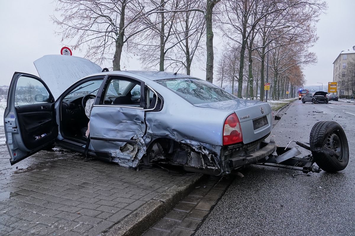 Am Käthe-Kollwitz-Ufer in Dresden hat es am Mittwochmittag einen schweren Unfall gegeben. Gegen 12.25 Uhr stießen auf der Kreuzung Hertelstraße aus noch ungeklärter Ursache zwei PKW VW Passat zusammen.