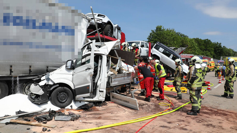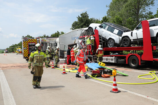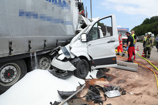 Wie die Polizei mitteilte, war der 51-Jährige Fahrer eines Sattelzuges auf den Kleintransporter am Stauende aufgefahren. Dabei schob er diesen auf einen davor stehenden Sattelschlepper. Der 50-jährige Fahrer des Kleintransporters starb in Folge der Verletzungen durch den Unfall. Der 51-Jährige wurde schwer verletzt.