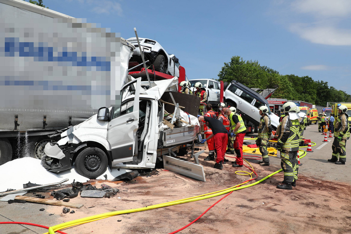 Wie die Polizei mitteilte, war der 51-Jährige Fahrer eines Sattelzuges auf den Kleintransporter am Stauende aufgefahren. Dabei schob er diesen auf einen davor stehenden Sattelschlepper. Der 50-jährige Fahrer des Kleintransporters starb in Folge der Verletzungen durch den Unfall. Der 51-Jährige wurde schwer verletzt.