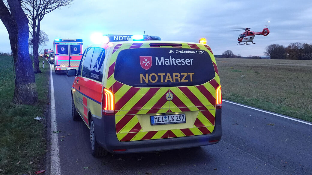 Bei einem schweren Unfall auf der B98 bei Lampertswalde im Kreis Meißen sind am Sonntagnachmittag vier Menschen verletzt worden. Eine 29 Jahre alte Autofahrerin war gegen 15 Uhr zwischen Folbern und Quersa beim Überholen ins Schleudern geraten. Der BWM prallte gegen einen Straßenbaum, überschlug sich und blieb auf einem Feld liegen, wie uns ein Polizeisprecher sagte.