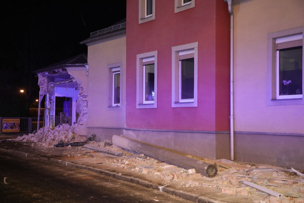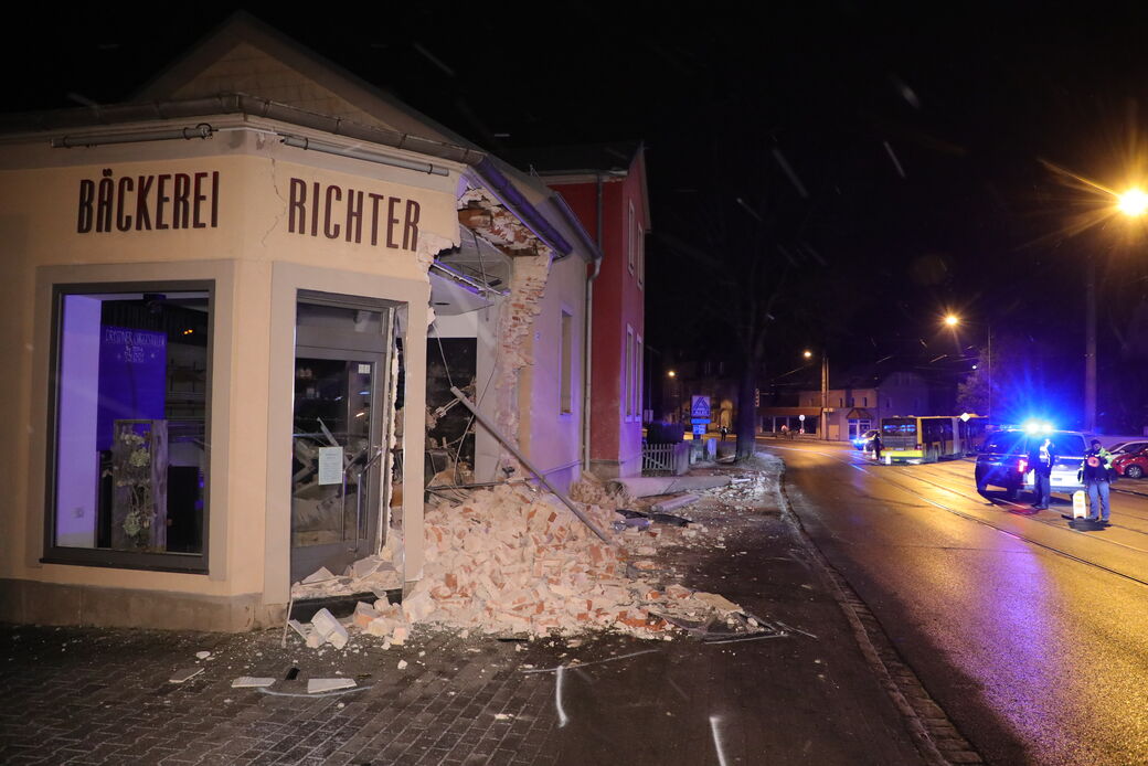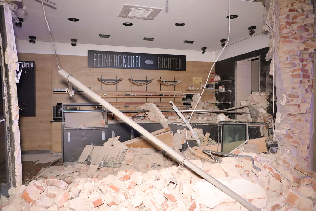 Der Sachschaden ist immens. Die Außenwand des Geschäfts ist weg. In der Bäckerei ist niemand zu Schaden gekommen. Da Montag Ruhetag ist, wurde in der Nacht auch nicht gebacken