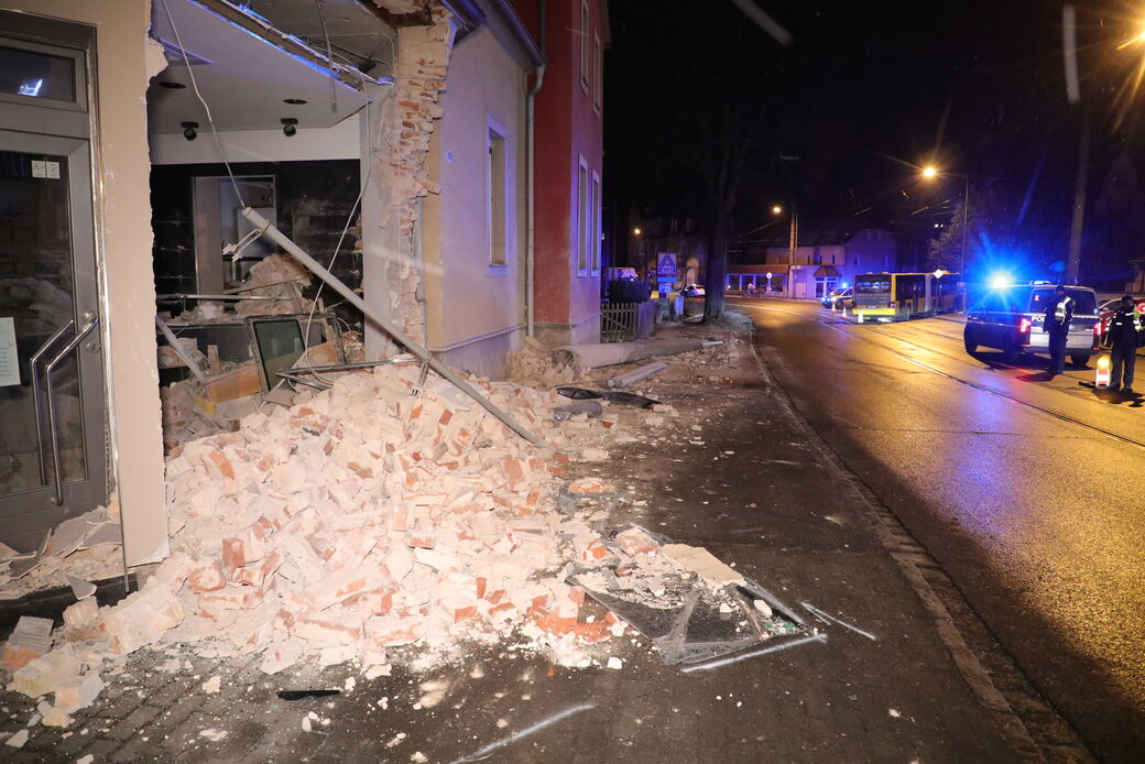 - Der Bus der Linie EV 11 war in Bühlau gegen die Hauswand einer Bäckerei gekracht