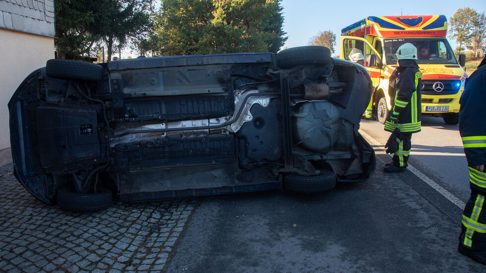 Schwerer Unfall in Langenwolmsdorf - Auto überschlägt sich