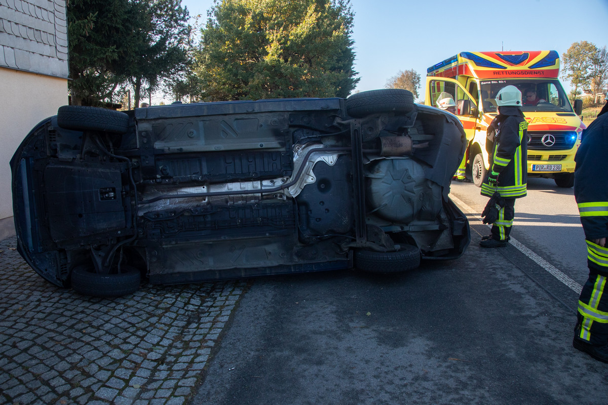 Schwerer Unfall in Langenwolmsdorf - Auto überschlägt sich