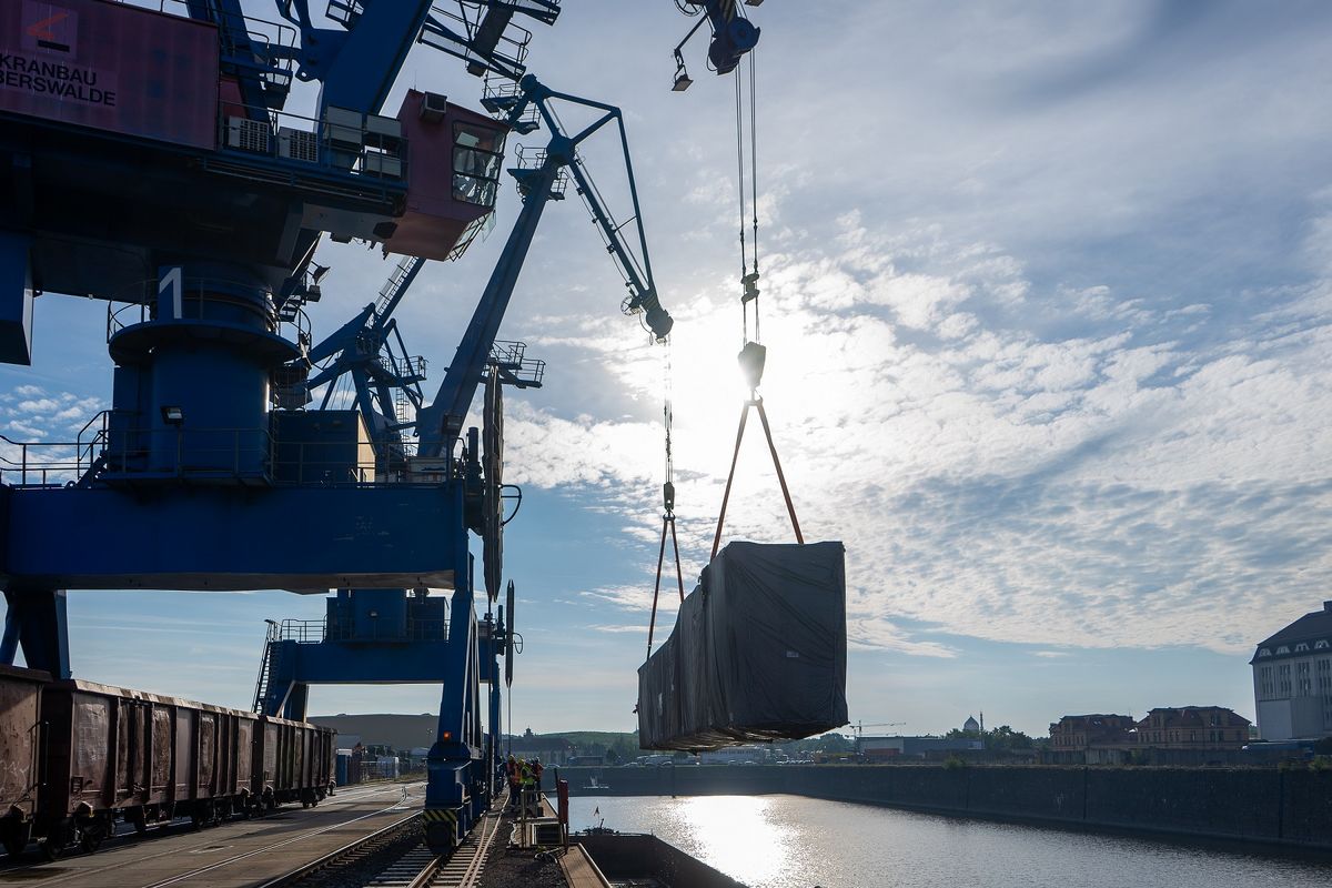 Die Ladung ist etwa 45 Tonnen schwer, 24 Meter lang und kam per Schiff aus den Vereinigten Arabischen Emiraten. Die letzten Kilometer legt der Transport nun unter anderem auf der A4 und der Königsbrücker Straße zurück.