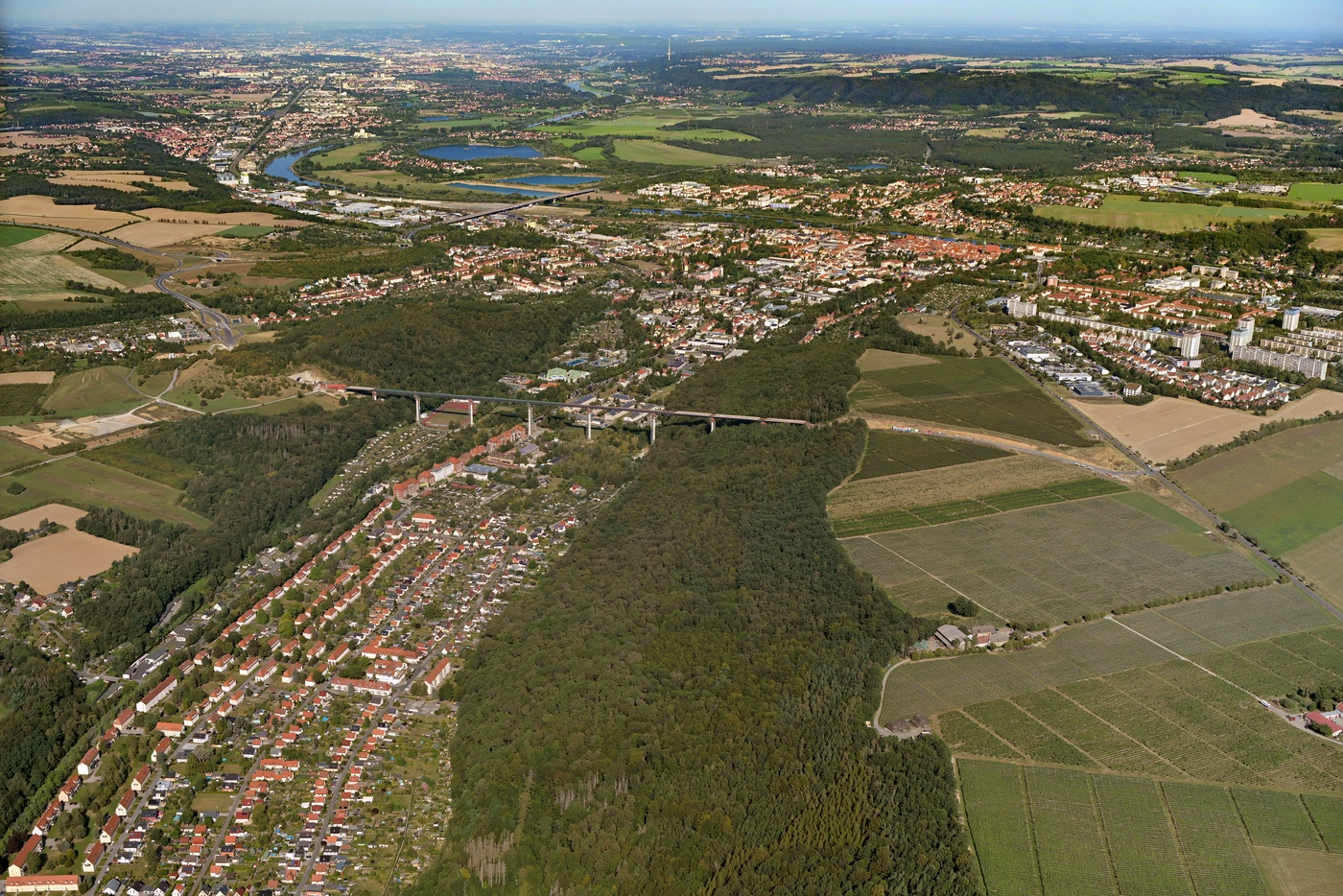 - Vom Tunnel führt die neue Straße direkt auf die 916 Meter lange Talbrücke