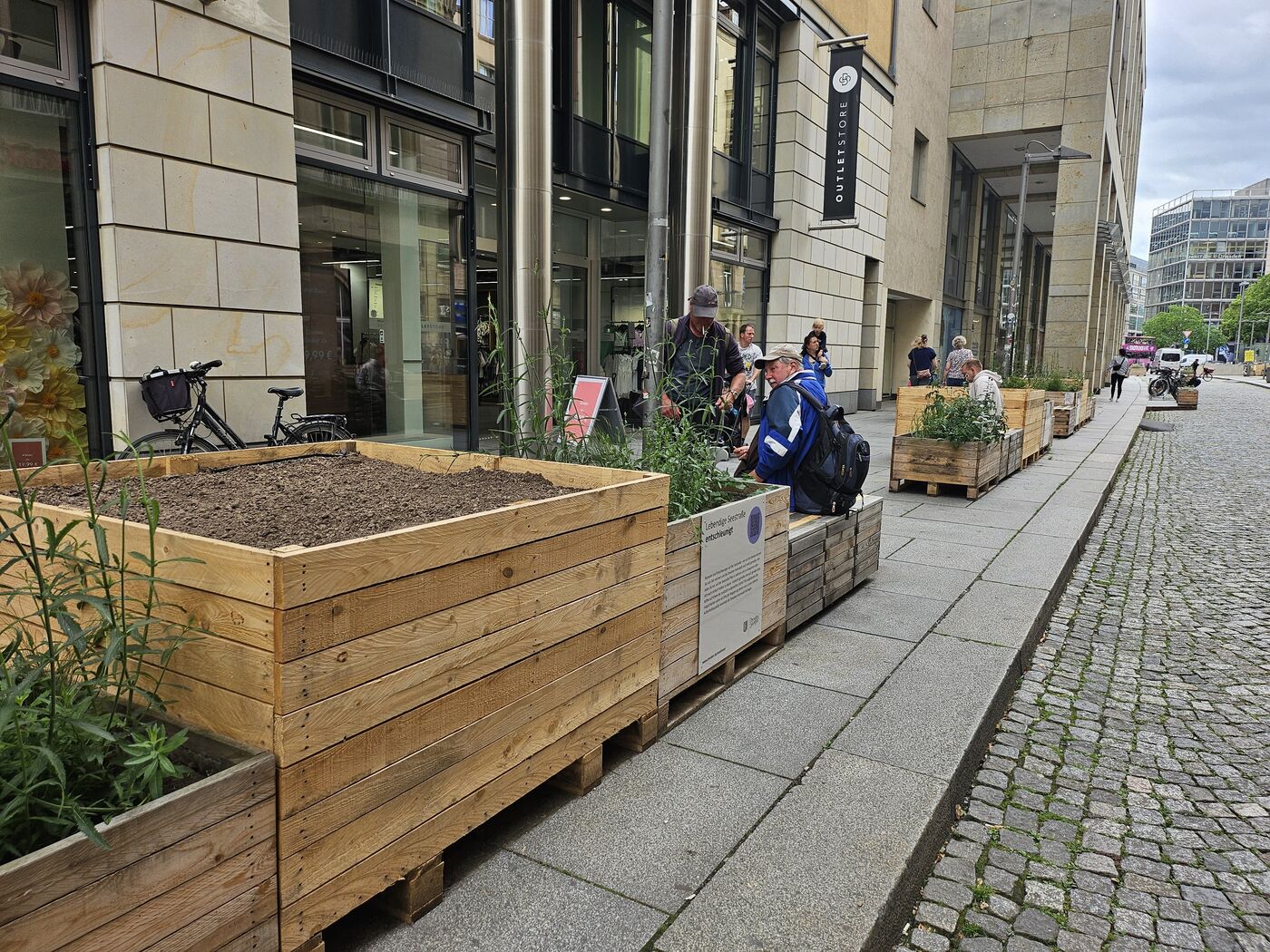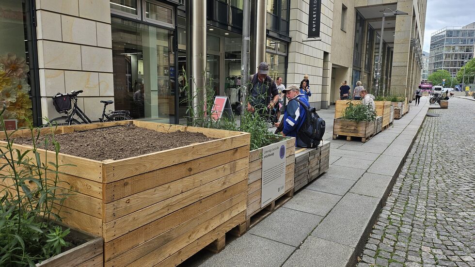 Die Seestraße ist jetzt eine Sommerstraße – mit Sitzgelegenheiten, Hochbeeten und Fahrradabstellmöglichkeiten lädt sie zum Flanieren und Ausruhen ein. Bis Herbst ist sie deshalb nur für Radfahrer, Fußgänger und Anlieferer frei. Für eine zusätzliche Begrünung werden in den kommenden Wochen noch Pflanzkübel aus Metall aufgestellt. Sie sollen auch nach dem Sommer die Seestraße dauerhaft begrünen. Auch die Straßen der neu gebauten Wohnquartiere rund um die Kreuzkirche sollen perspektivisch grüner werden, so Stadtbezirksamtsleiter André Barth.