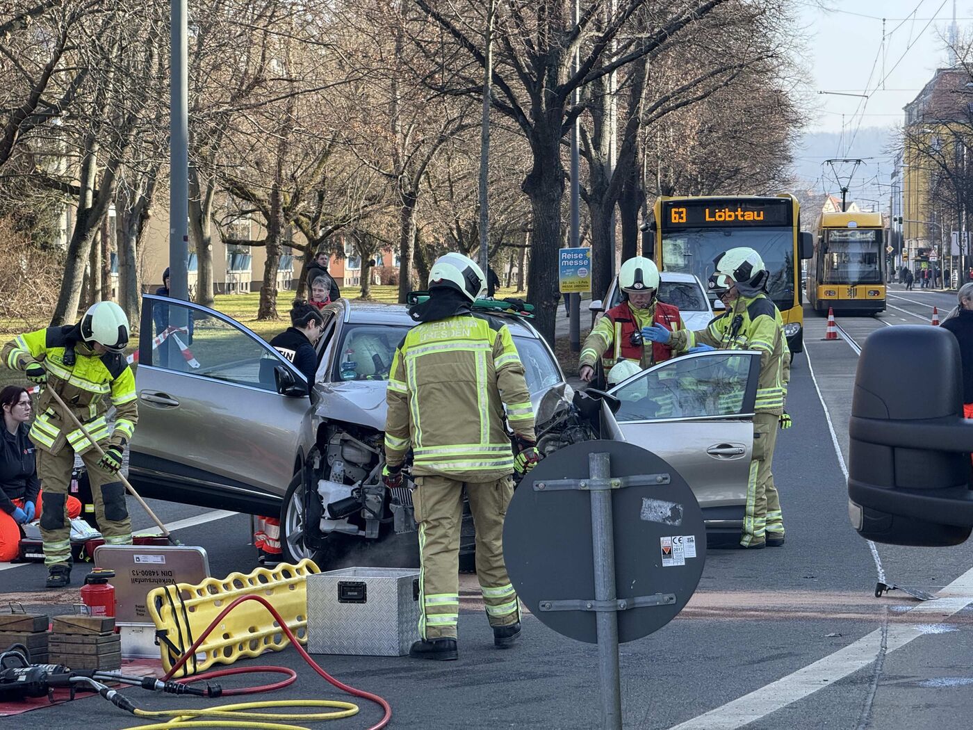 - Die Schandauer Stra0e ist wegen des Unfalls gesperrt