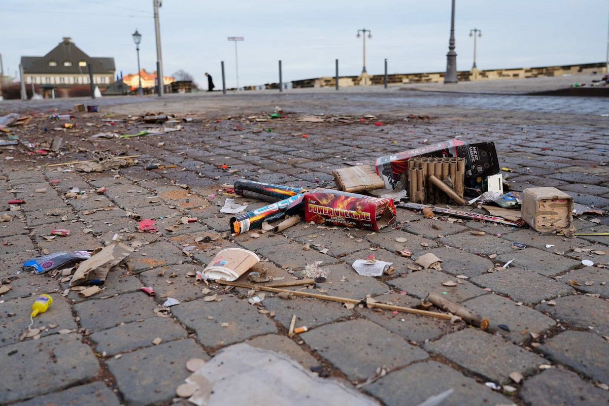 Silvester in Dresden: Temperaturrekord, brennende Autos und jede Menge Müll
