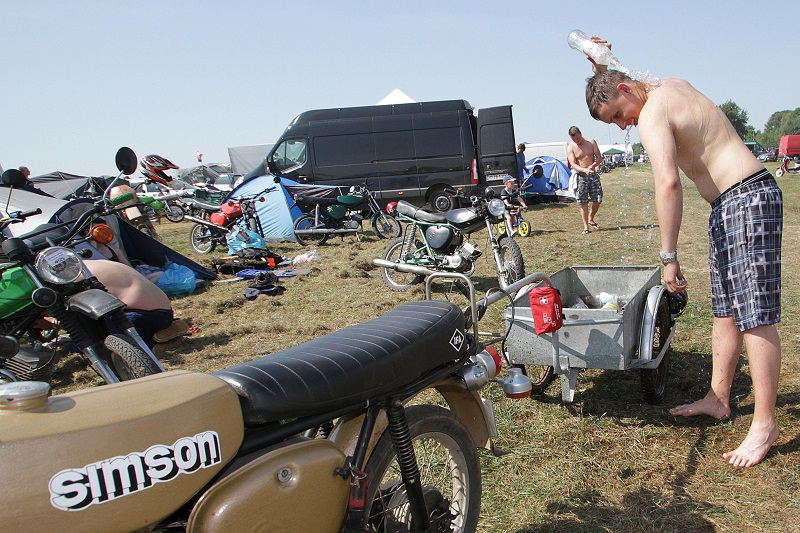 Heiße Öfen bei heißen Temperaturen – mehr als 1.800 Fahrzeuge der Marke Simson waren am Samstag nach Zwickau auf den Flugplatz gekommen – zum nach Veranstalterangaben größten Simsontreffen. Die Teilnehmer der elften Auflage reisten aus weiten Teilen Deutschlands an, aber auch aus Ungarn, Polen und Tschechien. Rund 5.500 Besucher ließen sich bei tropischer Hitze das Spektakel rund um Schwalbe, Star, Habicht & Co. nicht entgehen. Von den einst fünf Millionen gebauten Simson-Mopeds sind noch rund 500.000 auf deutschen Straßen unterwegs.
