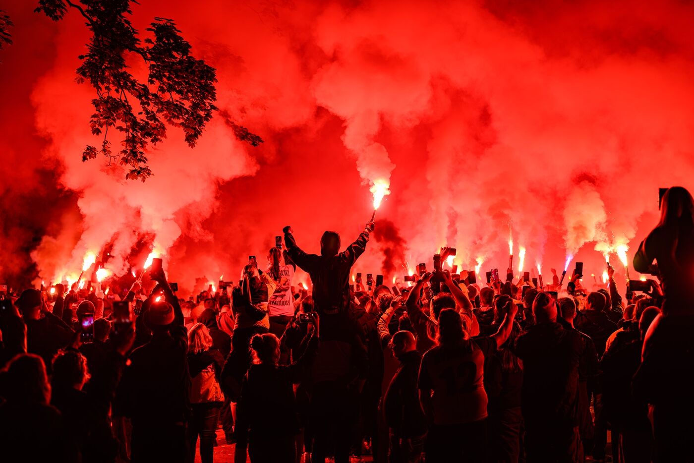 Mit Böllern und Bengalos haben die Dynamo-Fans den Mannschaftsbus in der Heimat empfangen. Es war kurz vor zwei Uhr in der Nacht zu Sonntag, als der Bus vor dem Trainingszentrum in Dresden eintraf.