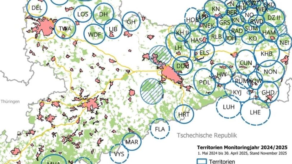 Die meisten Territorien mit 27 Rudeln, fünf Paaren und einer Einzelwölfin befinden sich nach wie vor in der Oberlausitz. Wolfsexperten sprechen von einem „gesättigten Bestand“. Zugleich herrsche eine hohe Dynamik. So habe das neue Rudel „Sumperteich“ das ehemalige Territorium „Dürrbach“ übernommen. Nicht mehr nachgewiesen wurden die Territorien „Daubitz-Kreba“ und „Zimpel“.