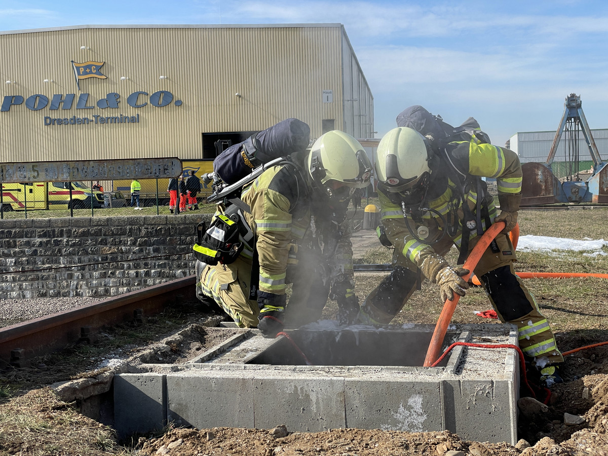 Die Feuerwehr Dresden musste am Mittwochmittag zu einem Brand im Alberthafen ausrücken. In einem mehrere hundert Meter langen Kabelschacht war ein Feuer ausgebrochen. Als die ersten Einsatzkräfte vor Ort eintrafen, schlugen Flammen und schwarzer Rauch aus einer Öffnung des Kanals.