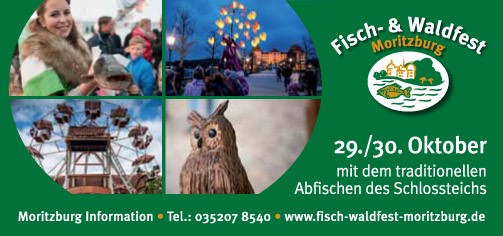 Dieses Wochenende (29./30.10.2022) lädt Moritzburg wieder entlang des Schlossteiches zum Moritzburger Fisch- und Waldfest ein. Freuen Sie sich auf die traditionellen Moritzburger Fischzüge und auf das anschließende Showkochen.