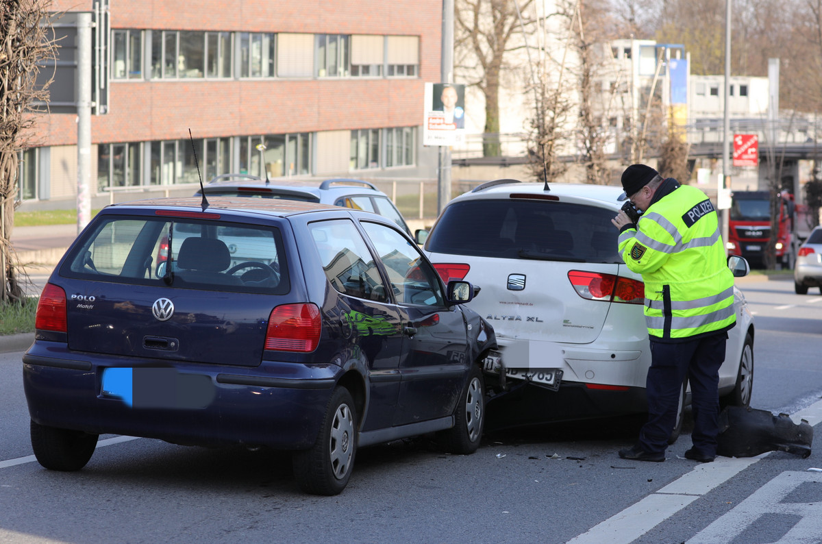 Im Berufsverkehr standen Kraftfahrer am Montagmorgen auf der Bergstraße stadteinwärts im Stau. In Höhe Momsenstraße war gegen 07: 45 Uhr ein Polo auf einen Seat aufgefahren und schob diesen auf einen Ford. Laut Polizei wurden die Fahrerinnen des VW und des Seat leicht verletzt.