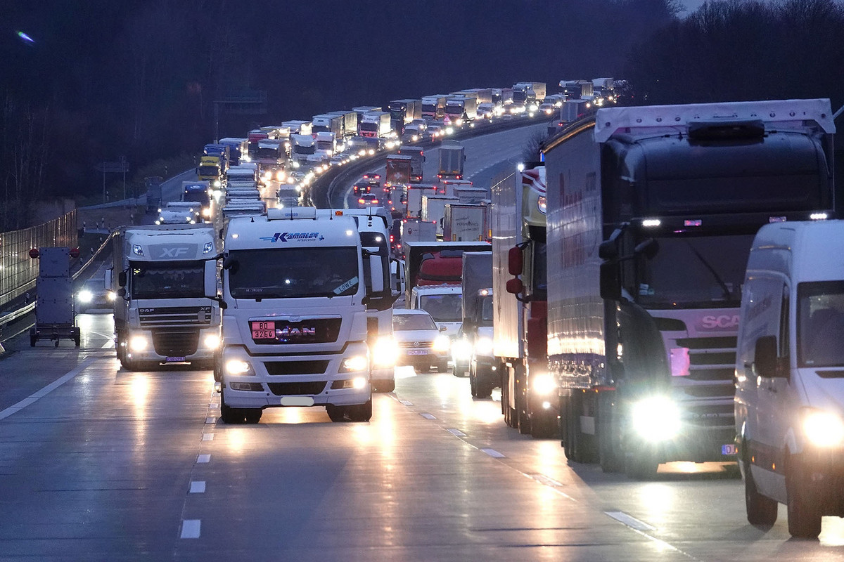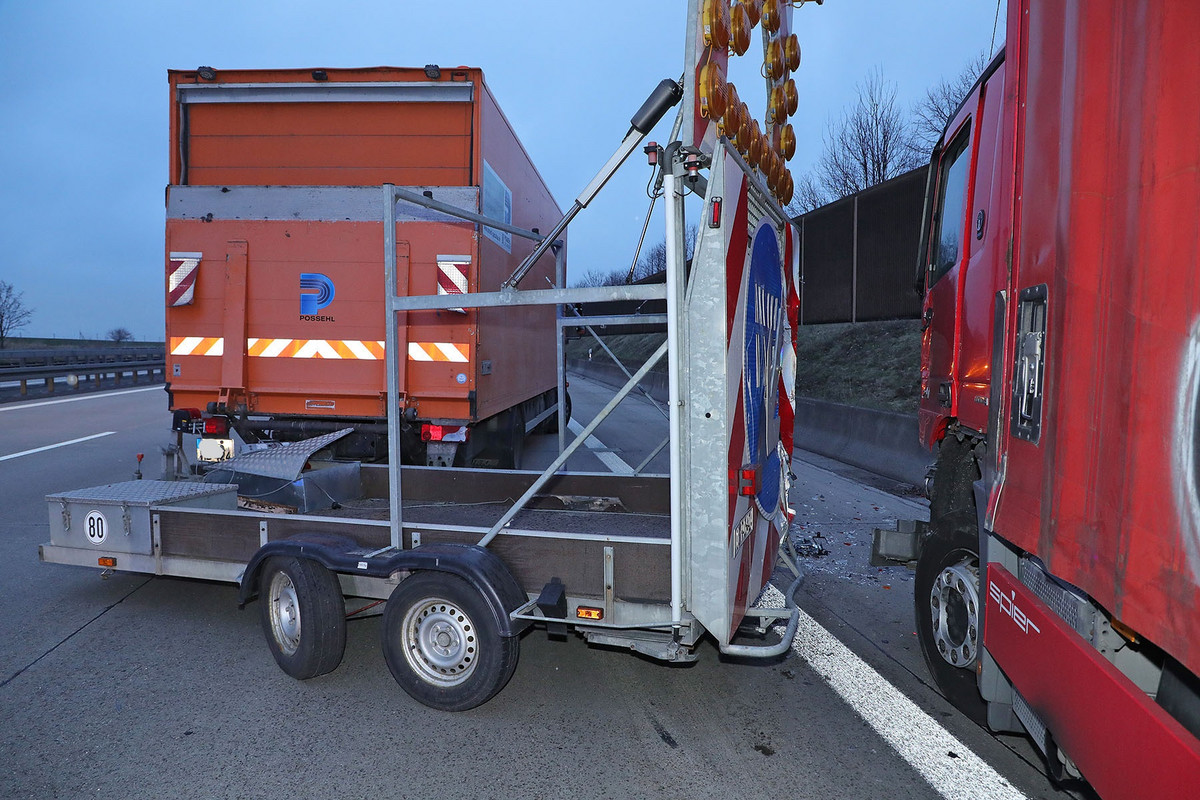 Stau zum Feierabend - Cola-Laster prallt auf Schilderwagen