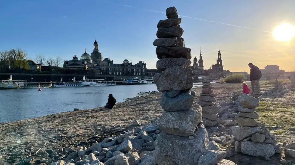 Derzeit bauen dort immer mehr Unbekannte aus Elbkieseln und herumliegendem Bauschutt kleine Steintürmchen. Ähnlich wie am Ostseestrand: Unten die großen, dicken, oben die kleineren Steinchen. Das Fotomotiv taucht immer öfter mit der legendären Altstadtkulisse im Hintergrund im Netz auf.