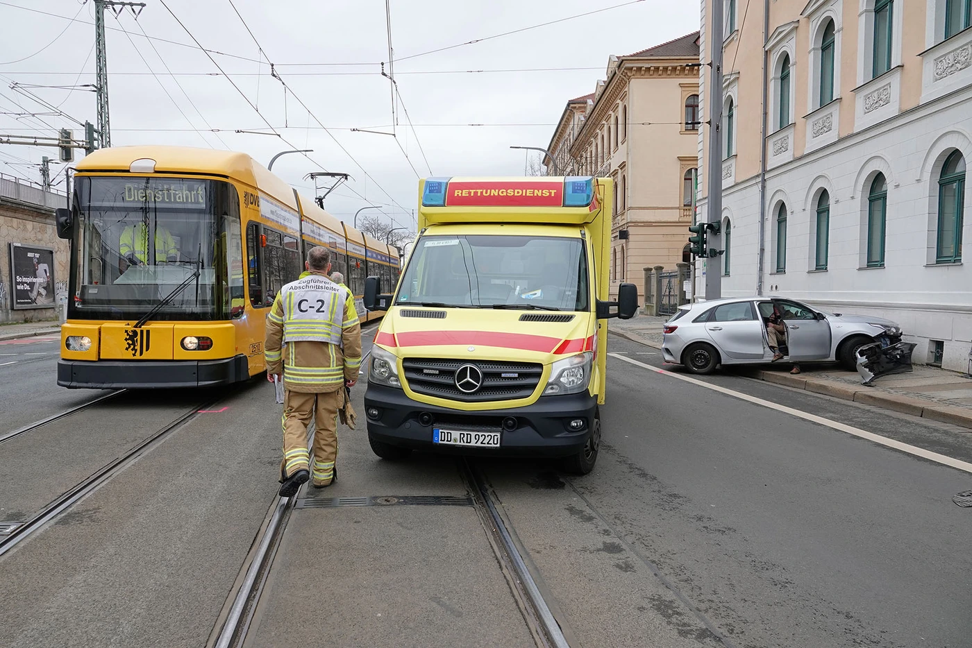 Das Fahrzeug musste abgeschleppt werden, die Schäden an der Straßenbahn blieben verhältnismäßig gering. Nach dem Unfall war die Antonstraße Richtung Albertplatz gesperrt. Die Polizei ermittelt zur Unfallursache.