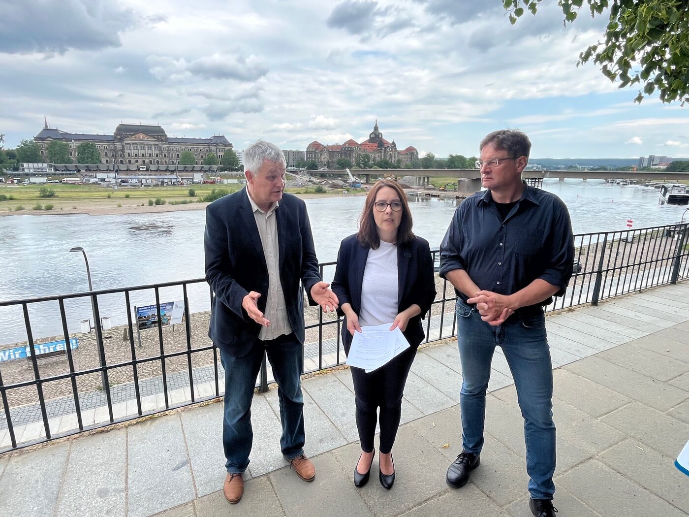 - Michael Hauck (Freie Bürger), Heike Ahnert (CDU) und Holger Zastrow (Team Zastrow, v.l.n.r.) wollen wieder eine vierspurige Carolabrücke zurück haben