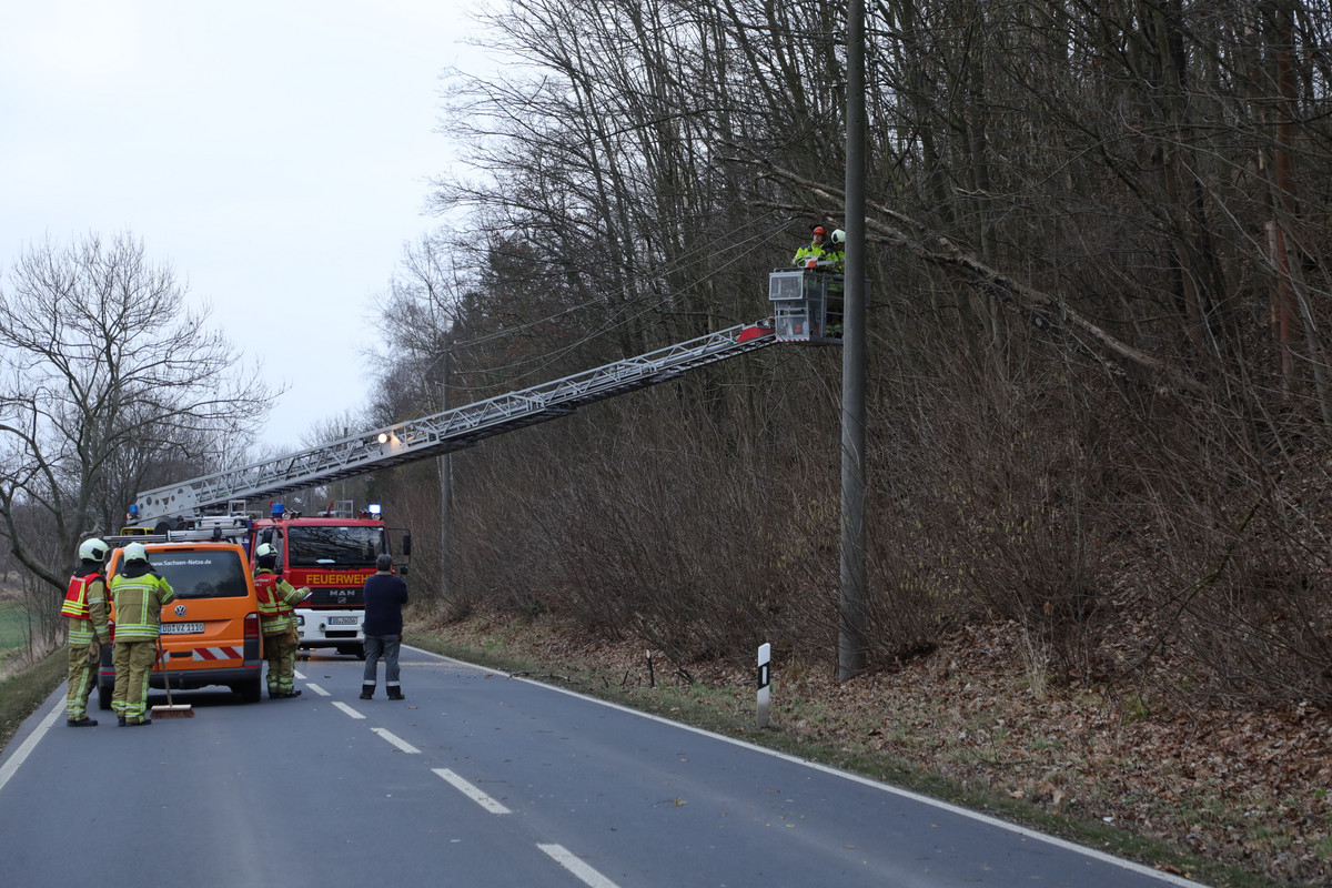 - Auf der B6 zwischen Niederwartha und Wildberg war ein Baum in eine Freileitung gekippt.