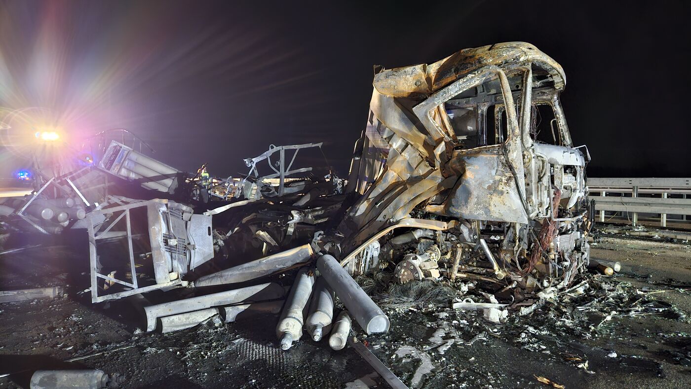 Neben dem verstorben Mann erlitten weitere vier Personen Verletzungen und wurden in umliegende Krankenhäuser gebracht. Es sei ein Schaden von geschätzt über 100.000 Euro entstanden. Im Einsatz waren über 100 Feuerwehrleute, elf Rettungswagen, zwei Notarztwagen, ein Rettungshubschrauber und die Autobahnmeisterei.