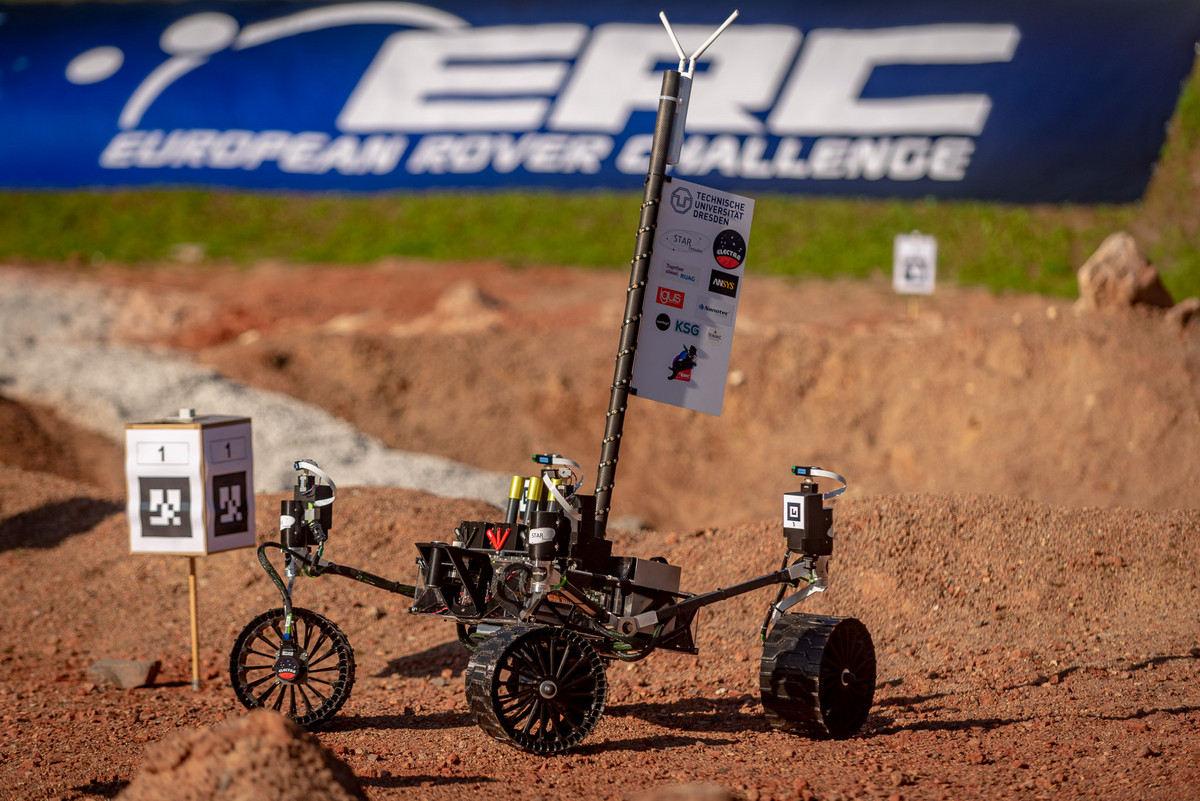 An der TU Dresden wird ein Mars-Rover namens Merope entwickelt - für einen internationalen Wettbewerb. Mit dem Gefährt will eine Studentengruppe nach TU-Angaben vom Freitag bei der European Rover Challenge (ERC) in Kielce/Polen (9. bis 11. September) gegen 15 andere Teams aus sieben Ländern bei antreten. Wie die echten Vorbilder Curiosity oder Perseverance werden die Fahrzeuge auf dem größten künstlich angelegten Mars-Testgelände der Welt autonom das Gelände erkunden, durch Kraterlandschaften navigieren oder Bodenproben entnehmen. Der 1500 Quadratmeter große „Mars-Yard“ mit Kratern, Dünen und „Lava“-Strömen ist den Angaben nach akribisch der Elysium-Region des Planeten nachempfunden.