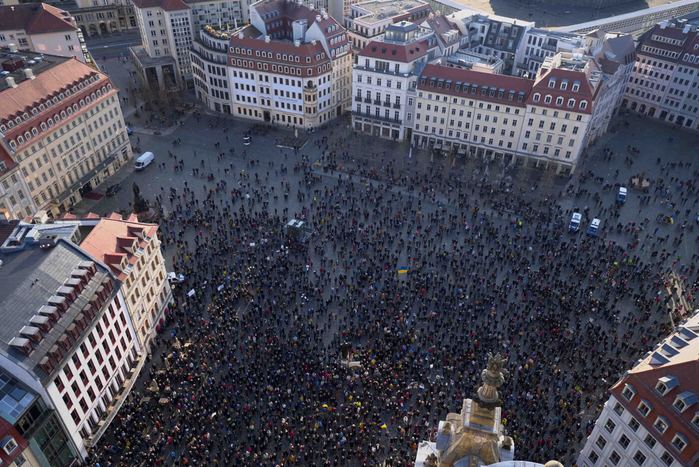 In Dresden haben am Nachmittag mehr als 3000 Menschen auf dem Neumarkt gegen den russischen Angriff auf die Ukraine demonstriert. Auf Plakaten und Spruchbändern forderten sie u.a. „Stoppt den Krieg“ und „Freiheit für die Ukraine“. Es war die dritte Demo in der Stadt. Bereits am Donnerstagabend waren Menschen zu einer spontanen Kundgebung zusammen gekommen, eine Weitere folgte am Freitag. Friedliche Versammlungen und Aufzüge gab es am Wochenende auch in Leipzig und Chemnitz.