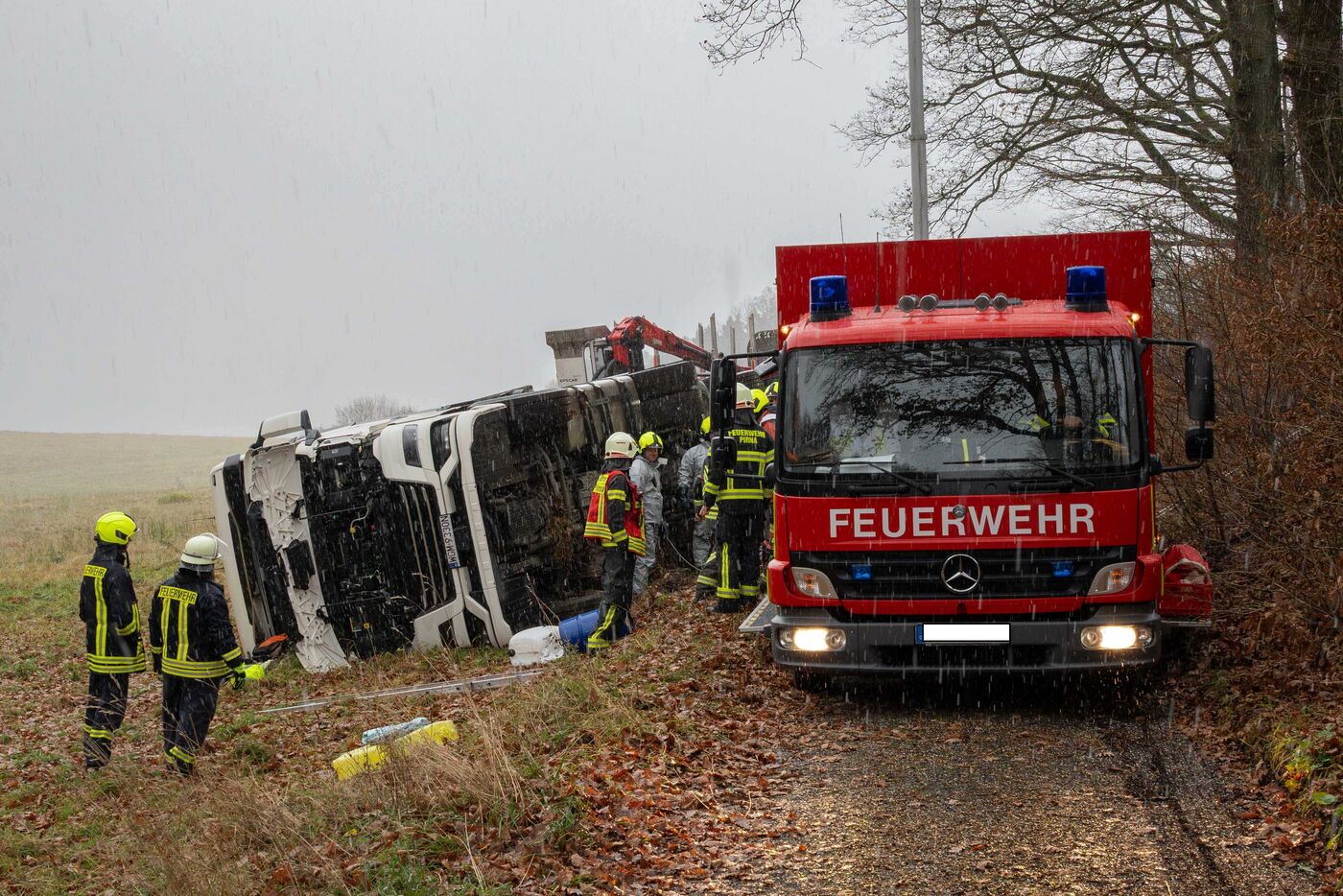 Umgekippter Laster sorgt für stundenlangen Einsatz