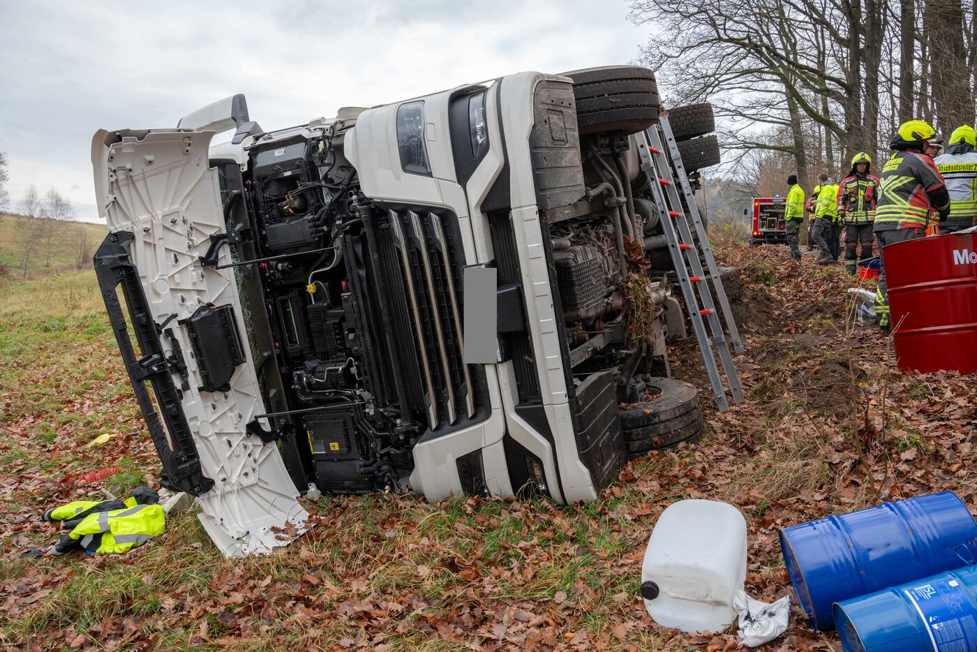 Außerdem mussten die Einsatzkräfte die Dieseltanks des LKW abpumpen, um eine Umweltgefährdung zu verhindern. Insgesamt waren 56 Feuerwehrleute sowie der Rettungsdienst im Einsatz.