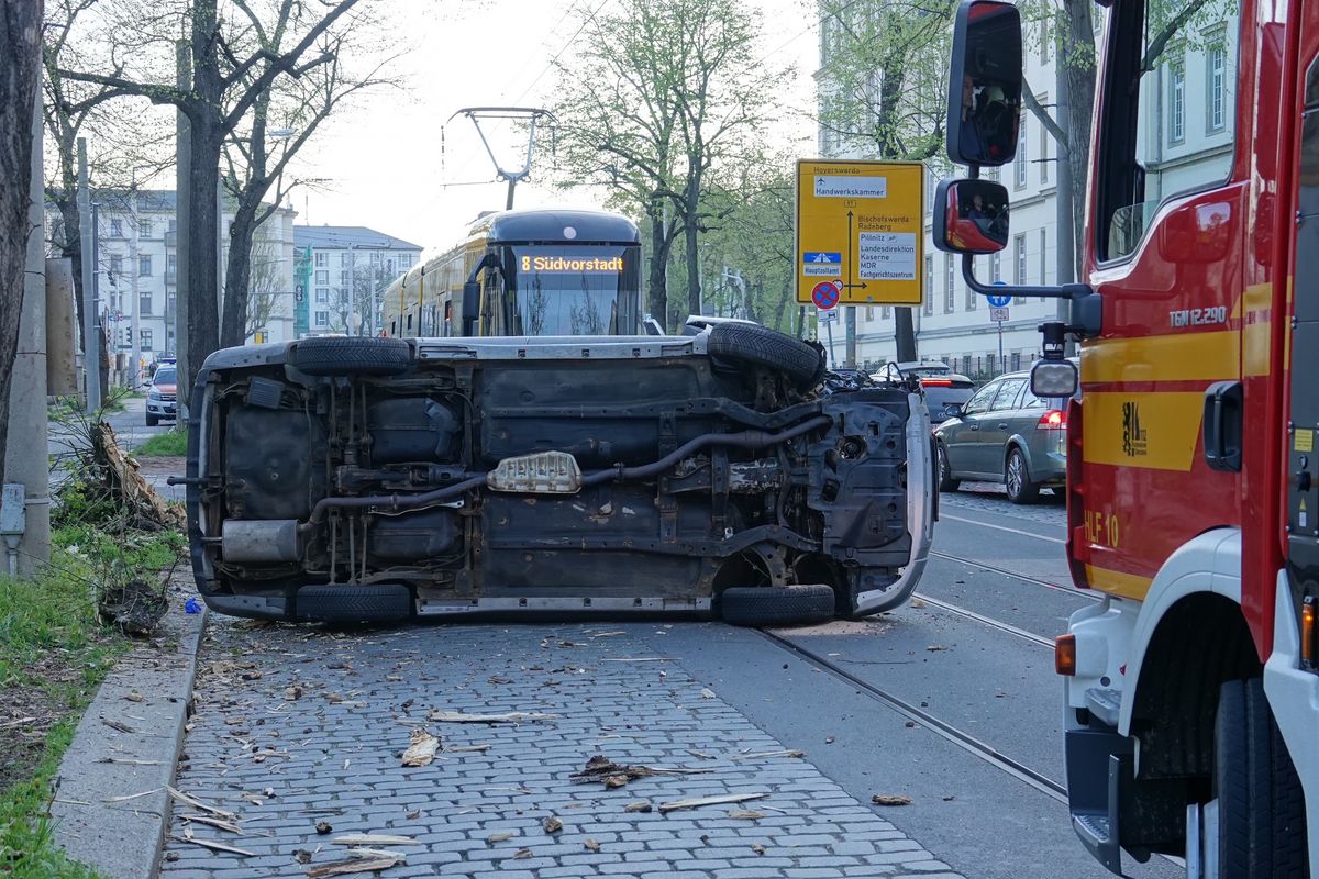 Umgestürztes Auto sorgt für Stau auf der Königsbrücker